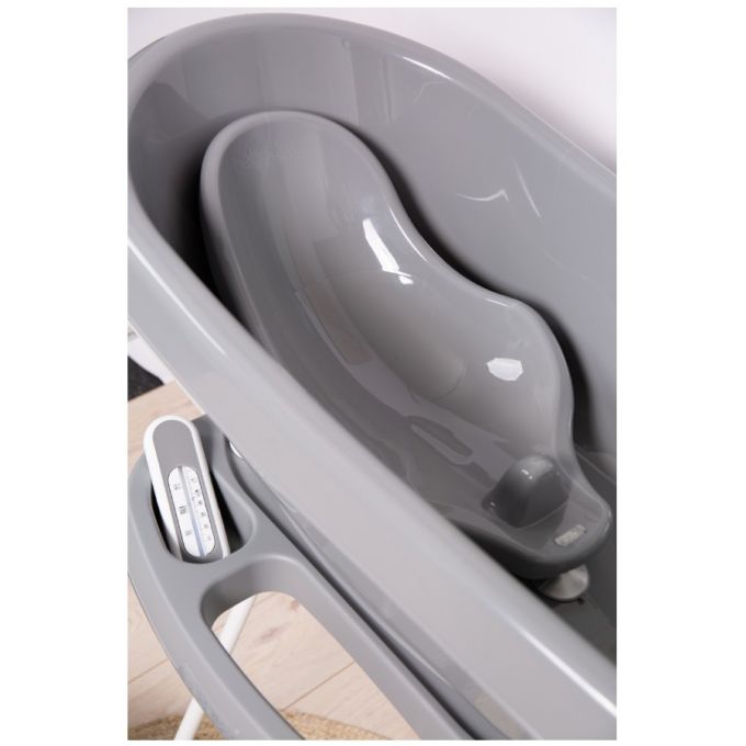 El soporte de baño bébé-jou proporciona un apoyo cómodo para su hijo. Se asegura de que su bebé tenga una posición erguida con la cabeza hacia arriba. Con las ventosas, es fácil colocar el soporte en el fondo de la bañera para bebés bébé-jou o la bañera Thermo bébé-jou, de modo que quede firmemente asentado. El soporte de baño es adecuado para bebés de 0 a 8 meses aproximadamente. ¡Precaución! Sujeta a tu bebé en todo momento durante el baño, también en el soporte de baño bébé-jou.