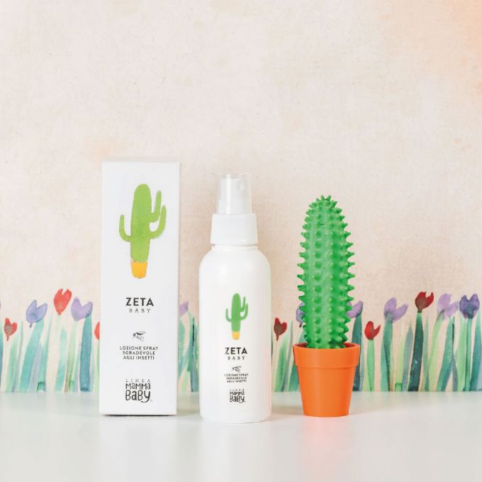 El cactus, llamado Zenino, es la loción repelente de insectos para cara y cuerpo de Zeta Baby.