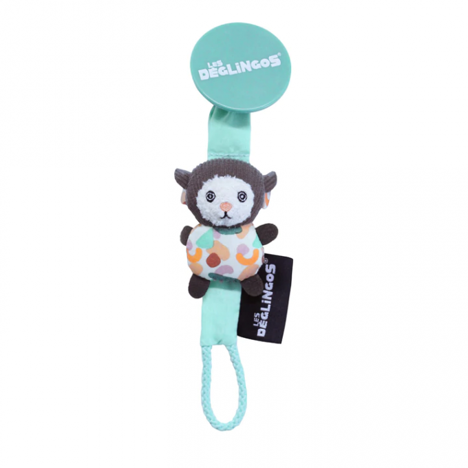¡El clip para chupete déglingos se sujeta fácilmente a la ropa con un clip de plástico para tener un chupete siempre a mano! ¡Más que un accesorio, el clip para chupete Déglingos es un pequeño juguete de peluche que el bebé puede manejar a su antojo!