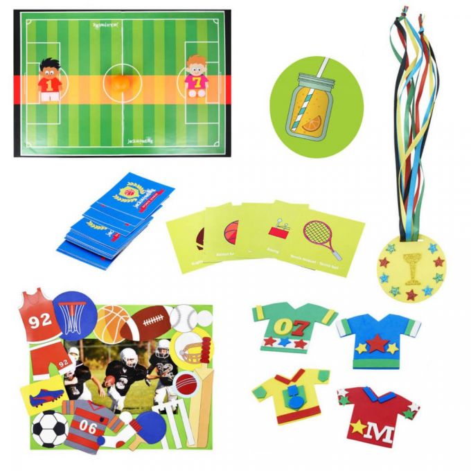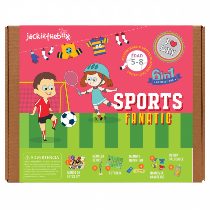 Caja de manualidades con instrucciones en castellano y todos los materiales necesarios para realizar hasta 6 actividades con la temática del deporte. Ideal para desarrollar la motricidad fina, la concentración, la expresividad artística, el aprendizaje y el lenguaje.