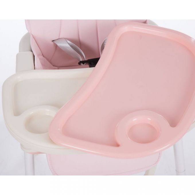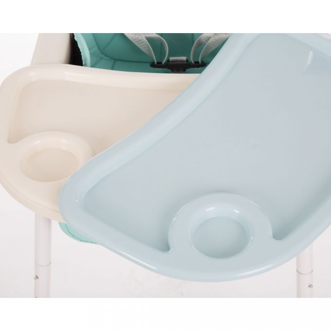 Esta silla viene con una bandeja doble para que los padres puedan quitarla y limpiarla fácilmente. Otra bandeja puede colocar algunos juguetes para jugar con el bebé. La bandeja de la tronase puede colocar en tres posiciones. Las bandejas son aptas para lavavajillas.