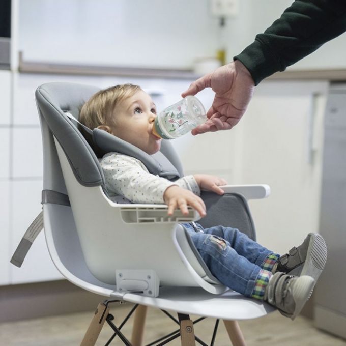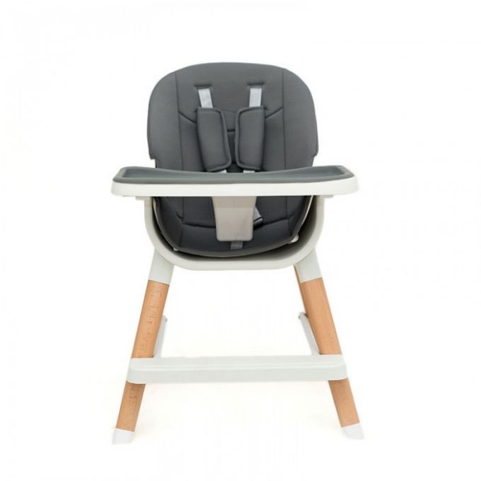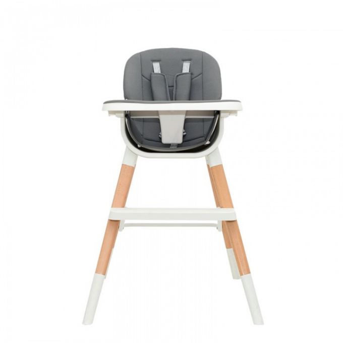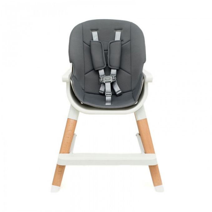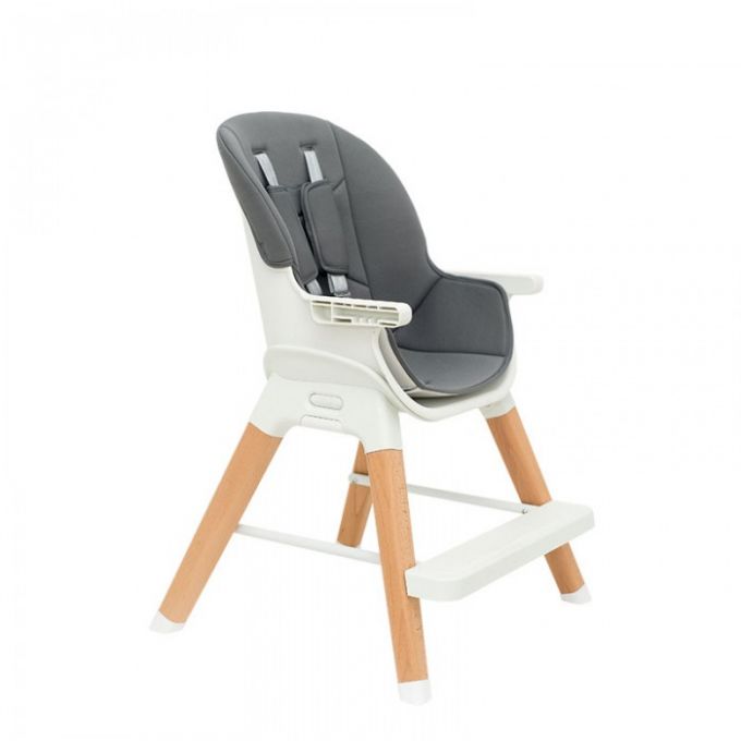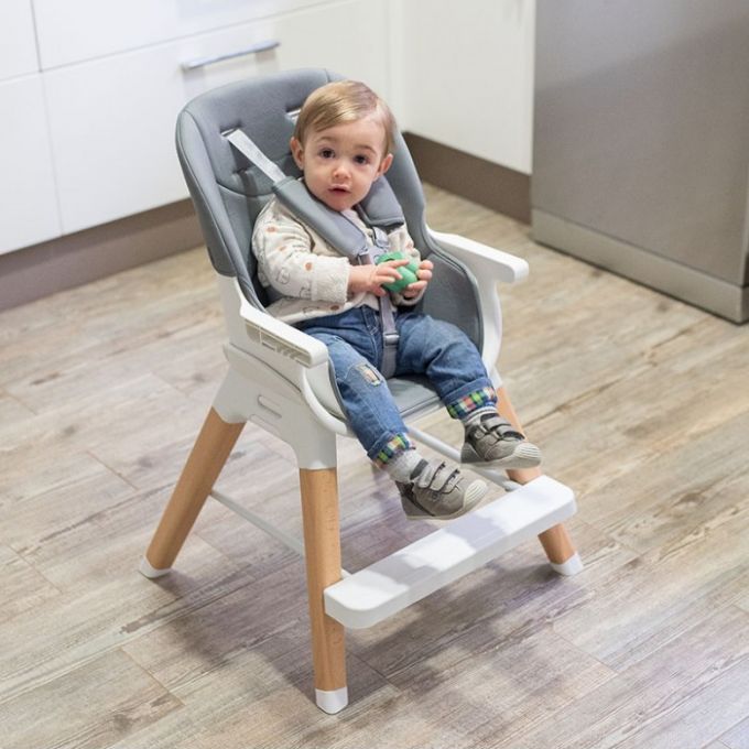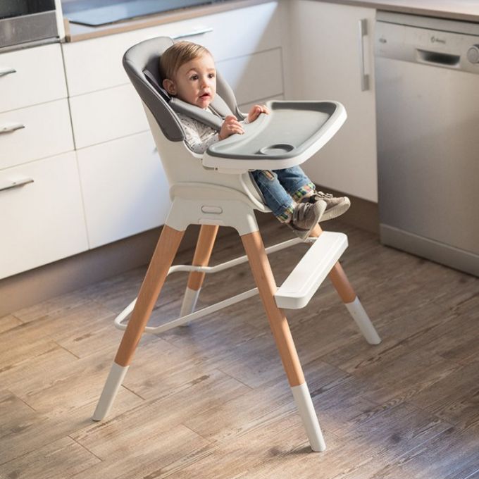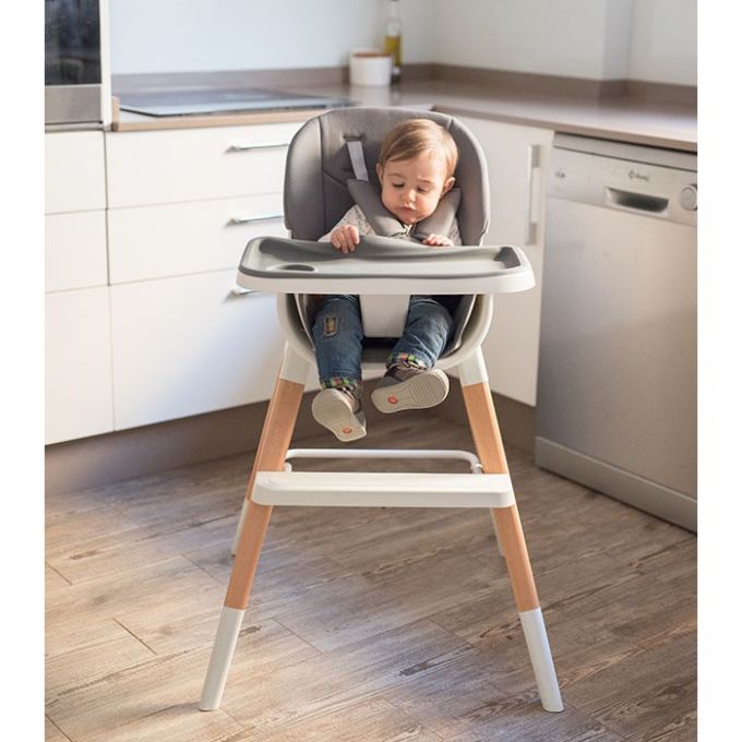 Trona de diseño anatómico y minimalista además de multifuncional ya que se puede convertir en trona, elevador, asiento junior o taburete. Con patas de madera natural de haya antideslizantes, bandeja extraíble y lavable con 3 posiciones.