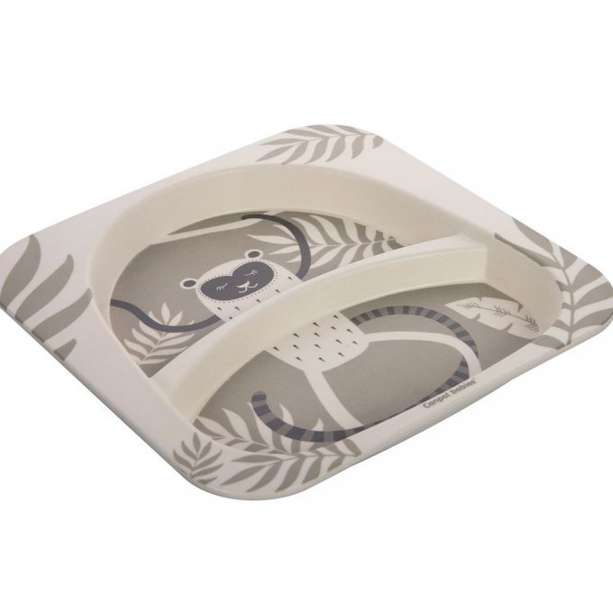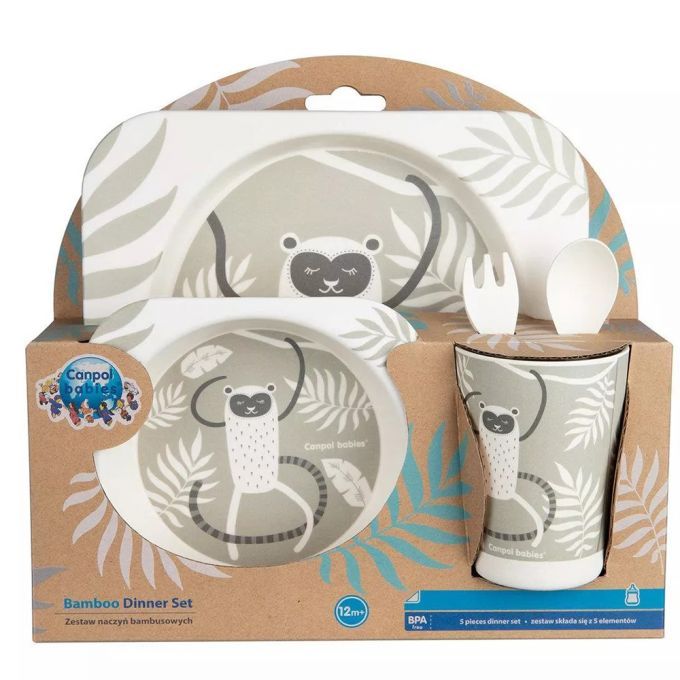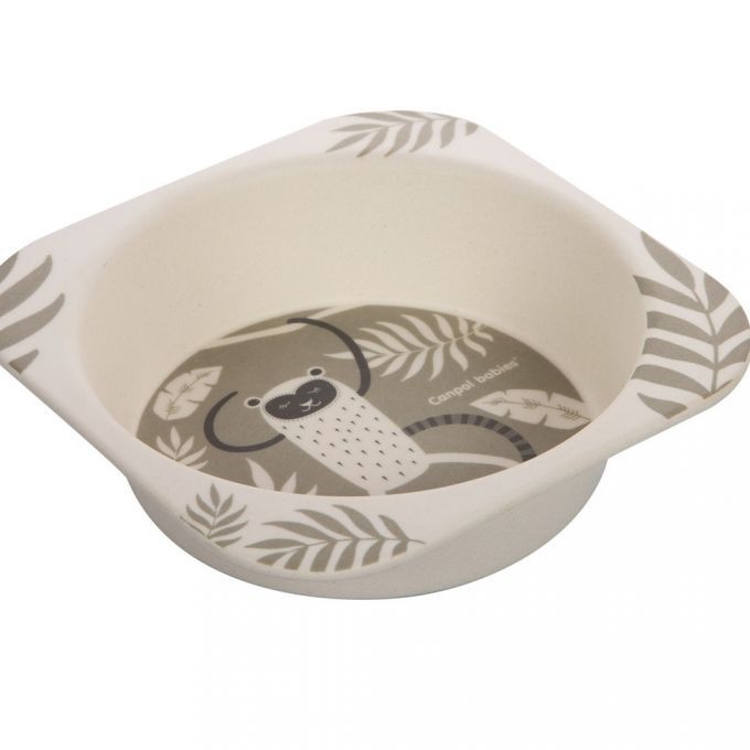 Juego infantil de vajilla de bambú con un divertido diseño de un Lemur.